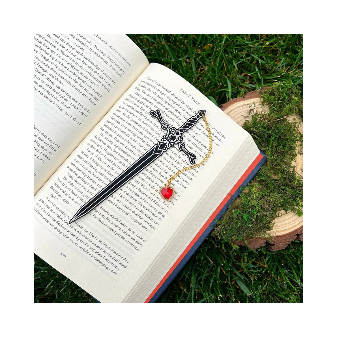 Heart Piercer Sword Faux Leather Bookmark